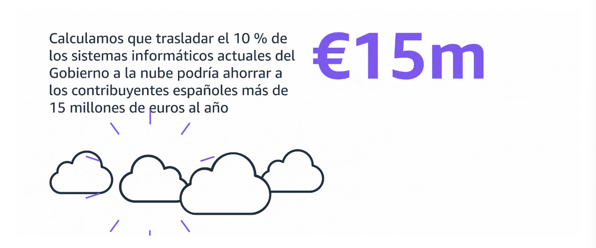 • Public First estima que trasladar un 10% de los sistemas informáticos del gobierno a la nube podría ahorrar a los contribuyentes españoles más de 15 millones de euros al año, debido mayoritariamente a los menores costes de inversión en infraestructura y su mantenimiento.