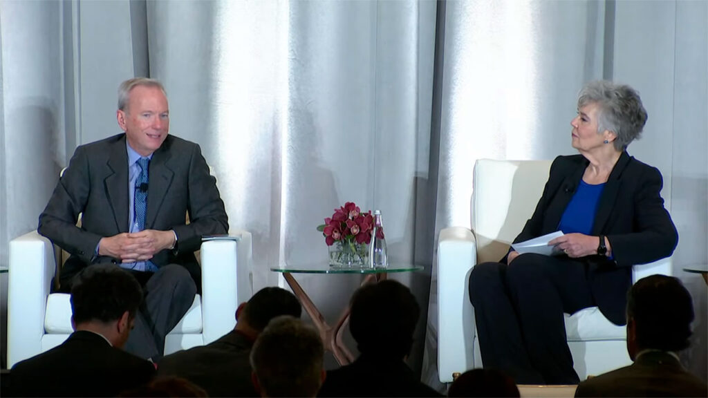 Durante una conversación organizada por el Special Competitive Studies Project (SCSP), Eric Schmidt, presidente del organismo y ex CEO de Google, abordó las implicaciones estratégicas del avance en inteligencia artificial (IA) y su convergencia con la biotecnología. Moderado por Jeanne Meserve, anfitriona del podcast SCSP NatSec Tech, el diálogo cubrió desde los desafíos técnicos hasta los dilemas éticos que plantea esta evolución tecnológica.