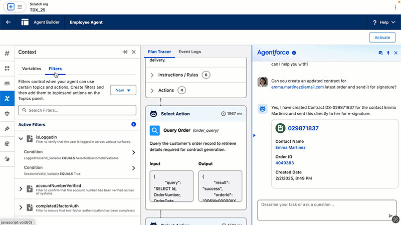 Entre las novedades más destacadas se encuentran nuevas capacidades de orquestación, la mejora de la integración con sistemas de terceros, herramientas avanzadas para el desarrollo de agentes y el lanzamiento de AgentExchange, un marketplace para la distribución de agentes listos para usar.