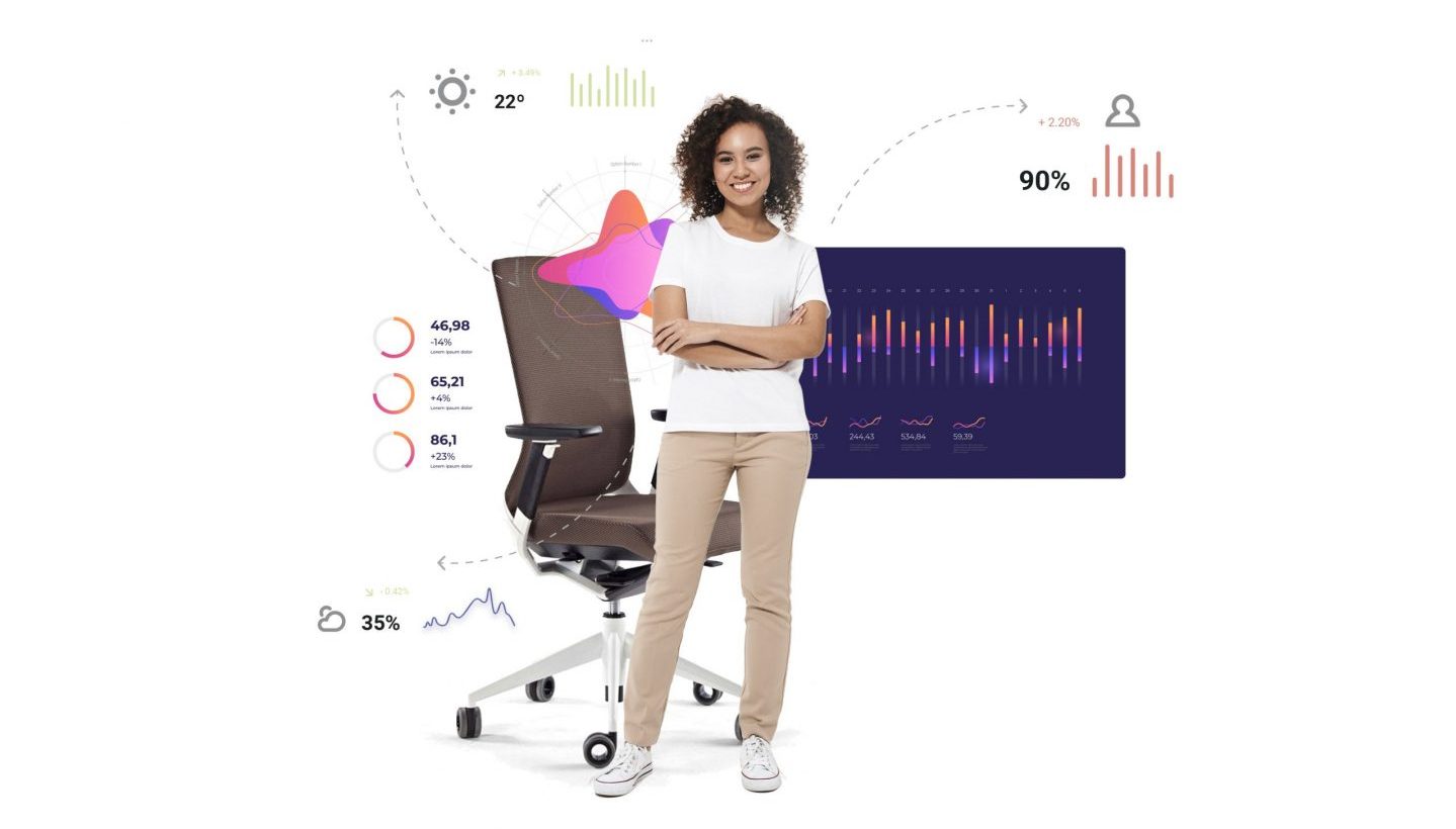 Gaia by Actiu ofrece un cuadro de mando sencillo, visual e intuitivo que incluye funcionalidades como análisis de datos, gestión de gráficos, visualización e información sobre planos y su monitorización. Incorpora además mapas de calor de ocupación, ratios de confort de ambiente, notificaciones de alertas e incidencias, gestión de contenido y analítica del mismo.