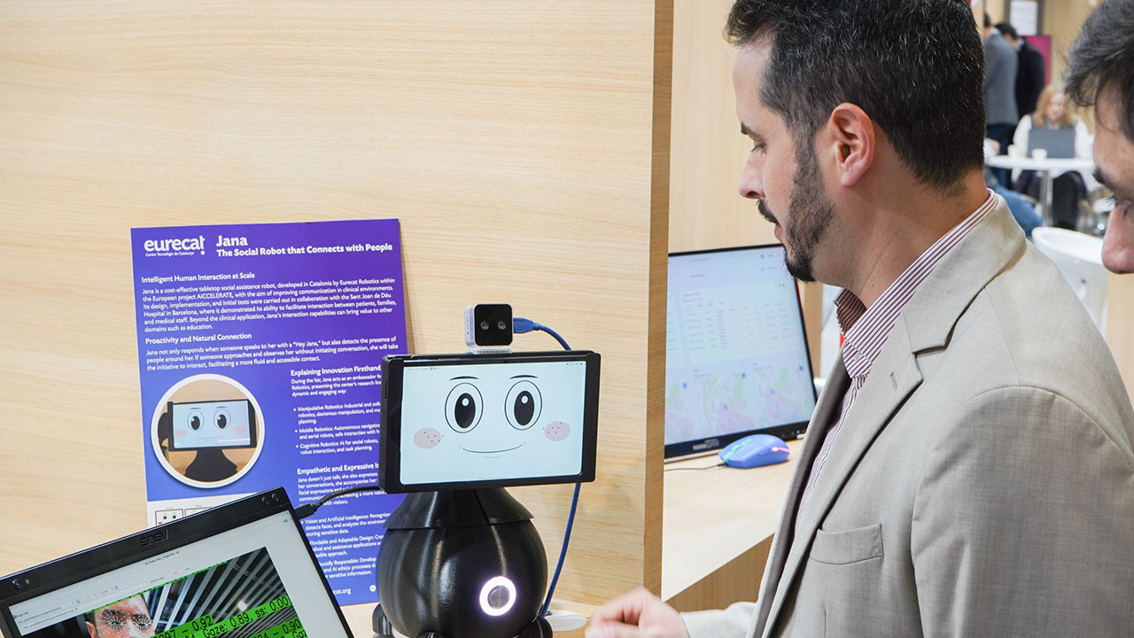 El centro tecnológico Eurecat ha dado a conocer en el Mobile World Congress (MWC) 2025 su nuevo desarrollo en el ámbito de la robótica social: el robot Jana. Este dispositivo, diseñado para mejorar la comunicación en entornos clínicos, emplea visión artificial e inteligencia artificial (IA) para reconocer rostros y analizar el entorno, lo que le permite interactuar de forma natural con pacientes, familiares y personal sanitario.