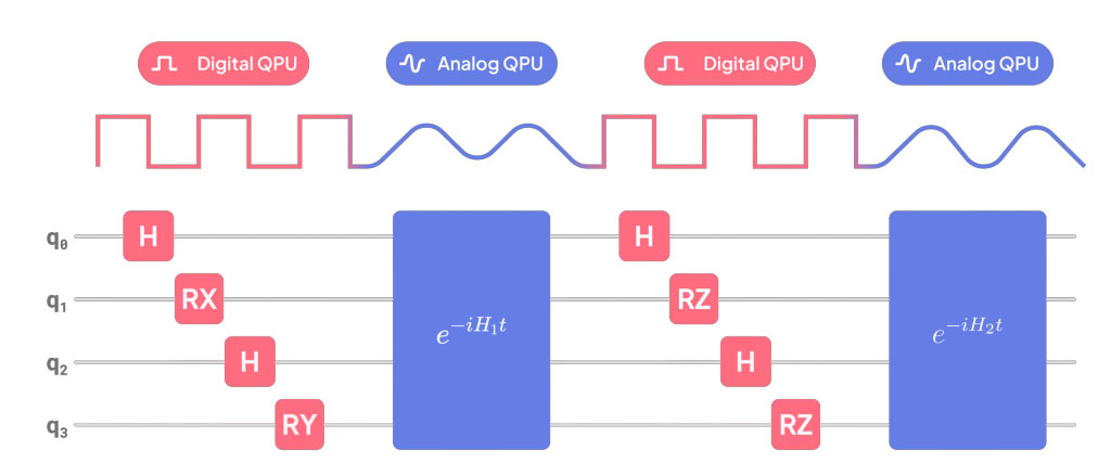 El enfoque analógico adopta otra vía. Aprovecha las interacciones naturales entre qubits y ajusta de forma continua los parámetros físicos del sistema para simular directamente la dinámica cuántica. Esto permite codificar problemas complejos —como la simulación de materiales o moléculas— en el propio hardware, evitando largas cadenas de operaciones digitales.