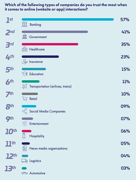 La confianza digital en 2026 no se distribuye de forma equitativa. Los sectores que gestionan activos críticos o datos sensibles mantienen una ventaja comparativa en la percepción de seguridad. La banca lidera este ranking de fiabilidad con un 57%, seguida de cerca por los servicios públicos y la sanidad. En contraste, sectores orientados al consumo directo, como el retail, las redes sociales o el entretenimiento, apenas superan el 10% en los índices de confianza. Esta disparidad sugiere que el consumidor medio asocia la regulación estricta con la protección, penalizando a las plataformas de ocio o comercio por una supuesta ligereza en el tratamiento de la información.
