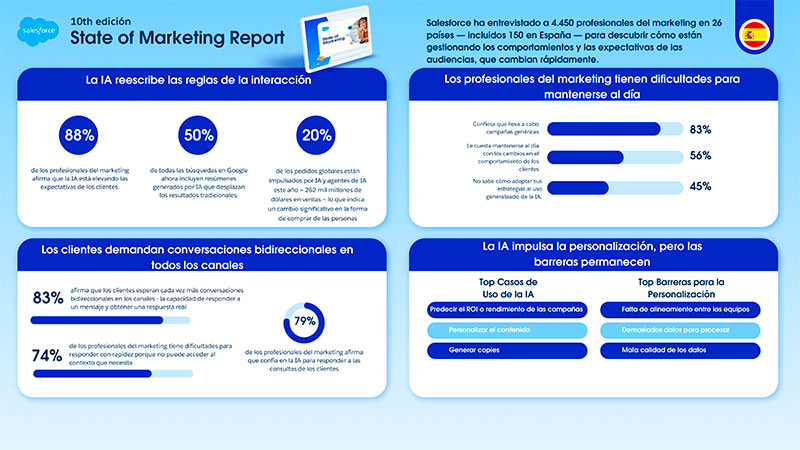 Laura Guzmán, Area Vicepresident de Salesforce, identifica una contradicción crítica en este despliegue tecnológico al señalar que «estamos utilizando la tecnología más potente de la historia para enviar más spam unidireccional y de manera más rápida». Esta reflexión subraya que el aumento de la rentabilidad no debe confundirse con una mejora automática de la calidad comunicativa. Para Guzmán, la clave de la nueva era reside en la precisión: «No se puede ofrecer a un cliente la personalización que demanda si la IA no tiene una visión completa de quién es ese cliente».