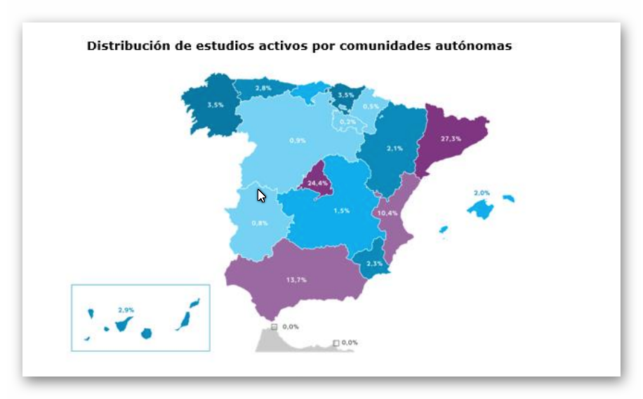 Los motores del desarrollo siguen siendo Cataluña, que aglutina el 27,3% de los estudios, Madrid (24,4%), Andalucía (13,7%) y Valencia (10,4%).