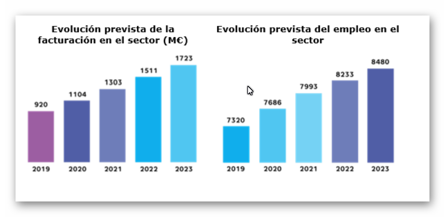 Según las previsiones, la facturación crecerá a un ritmo anual del 17%, lo que supondría superar en 2023 los 1.700 millones de euros. El crecimiento previsto del empleo a una tasa compuesta anual es del 4,5%, de forma que se podrían llegar a los 8.500 empleos directos en 2023.