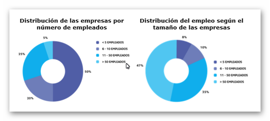 Esto tiene un reflejo en el empleo, la mitad de las empresas tienen menos de cinco empleados y las que tienen más de 50 trabajadores solo representan el 5% de la industria nacional. Son los grandes estudios los que concentran la fuerza laboral y dan trabajo a 47% de los desarrolladores españoles mientras que los estudios de menos de 5 personas solo representan el 8% de puestos de trabajo.