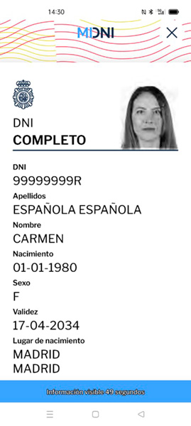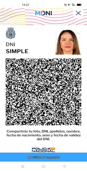 La aplicación MiDNI es, por el momento, la única vía oficial para disponer del DNI en formato digital y tiene respaldo jurídico para ser usada en entornos donde se requiera identificar a una persona de manera presencial. El sistema genera un código QR firmado digitalmente y sellado por la Policía Nacional, lo que garantiza la veracidad y vigencia de los datos proporcionados en el momento de su verificación.