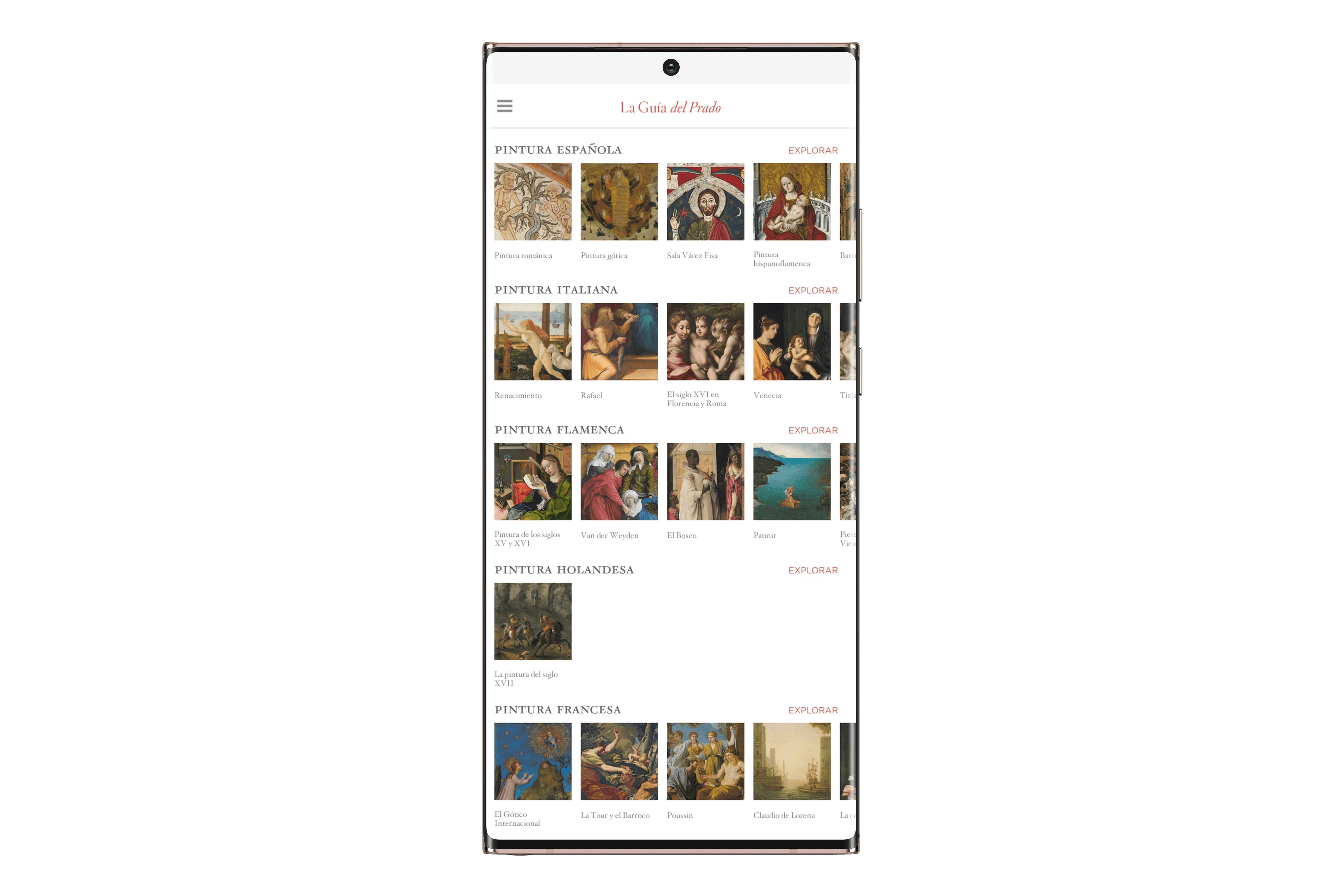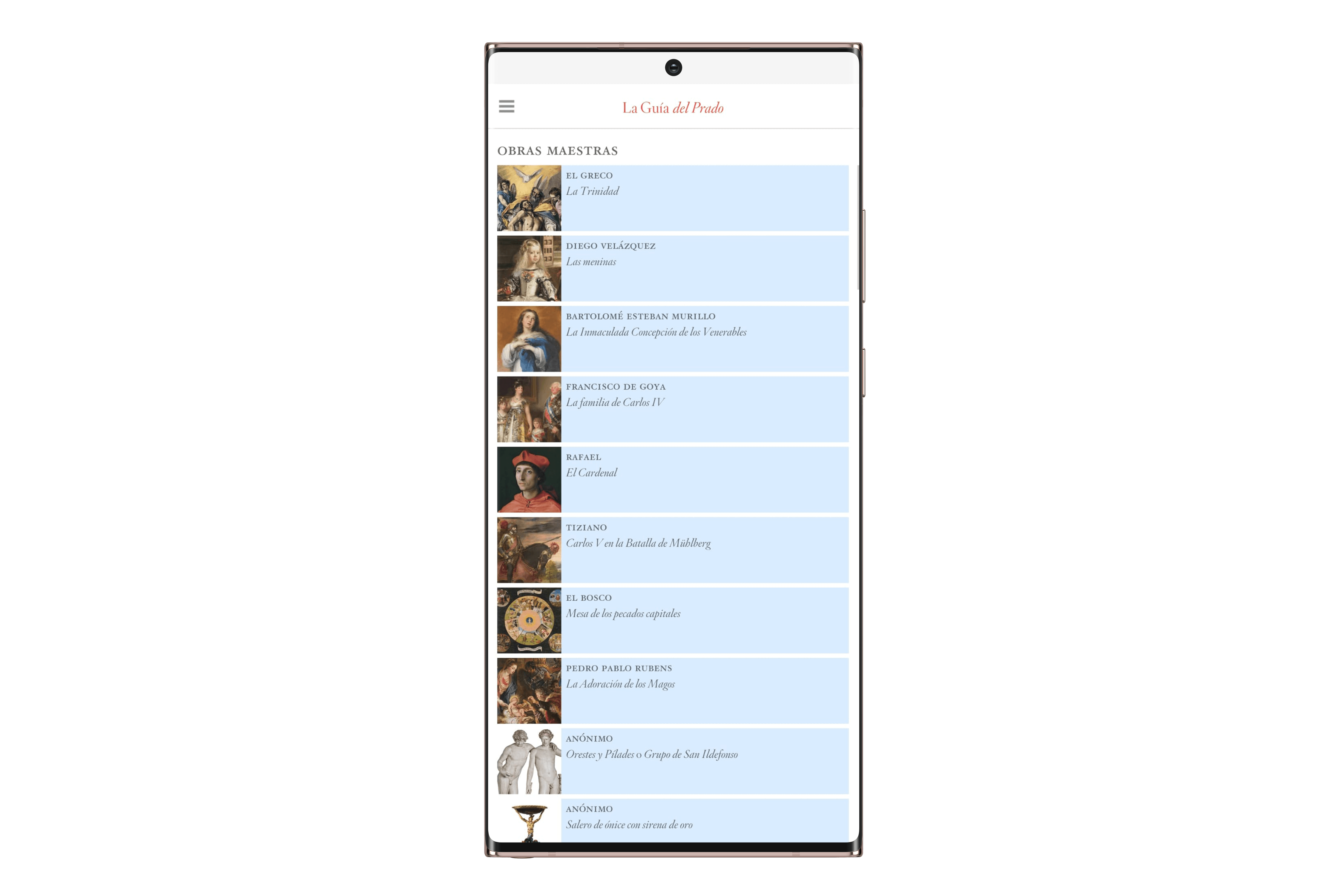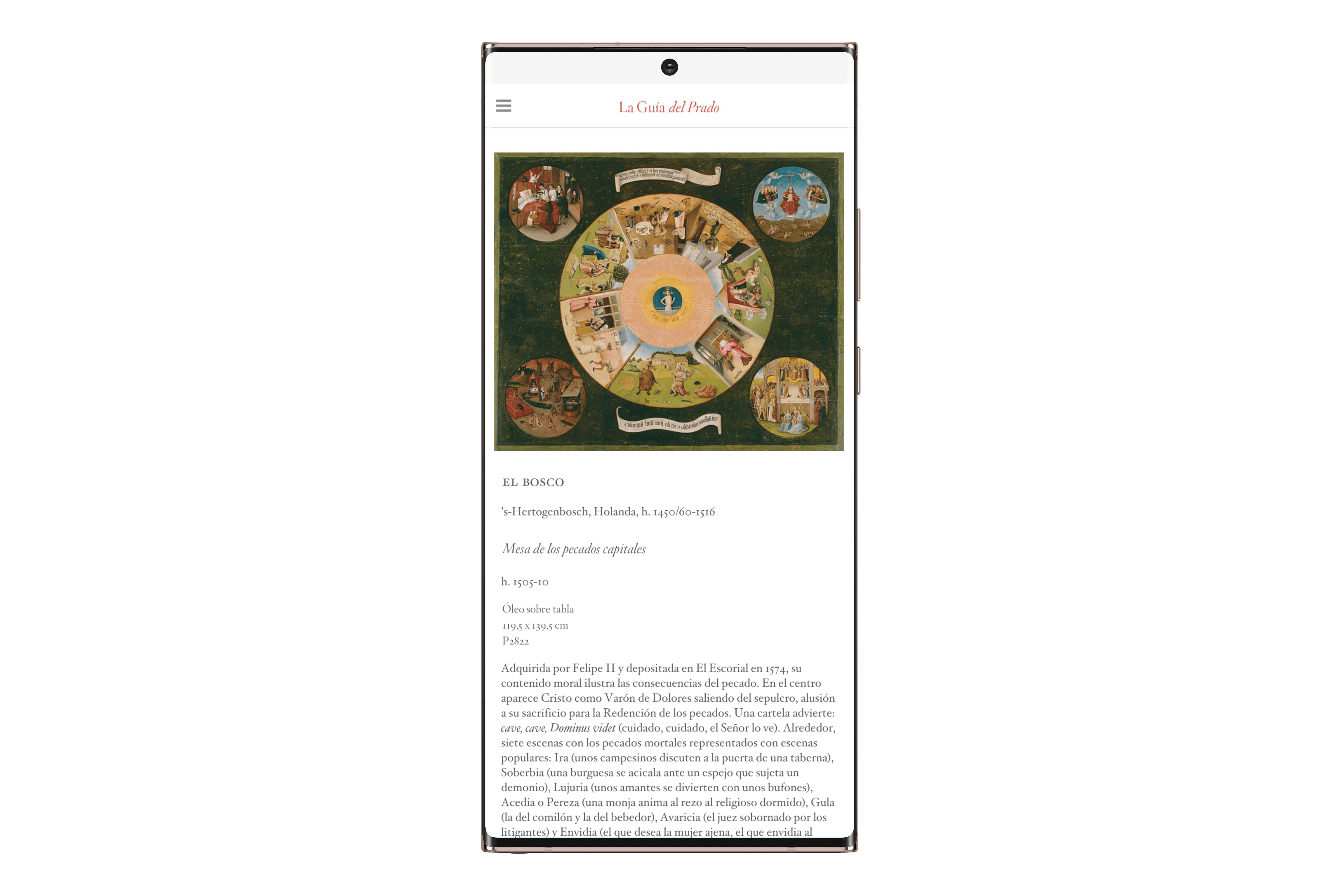 El Museo Nacional del Prado y Samsung dan un importante paso en su propósito de acercar el arte a la sociedad a través del uso responsable de la tecnología con el lanzamiento de la app La Guía del Prado. Dirigida a todo amante de la historia del arte, a quienes quieran preparar su visita o dedicar más tiempo a estudiar los detalles de sus obras favoritas, esta app pone a disposición del usuario 400 obras del Prado para disfrutarlas desde cualquier lugar y en cualquier momento.