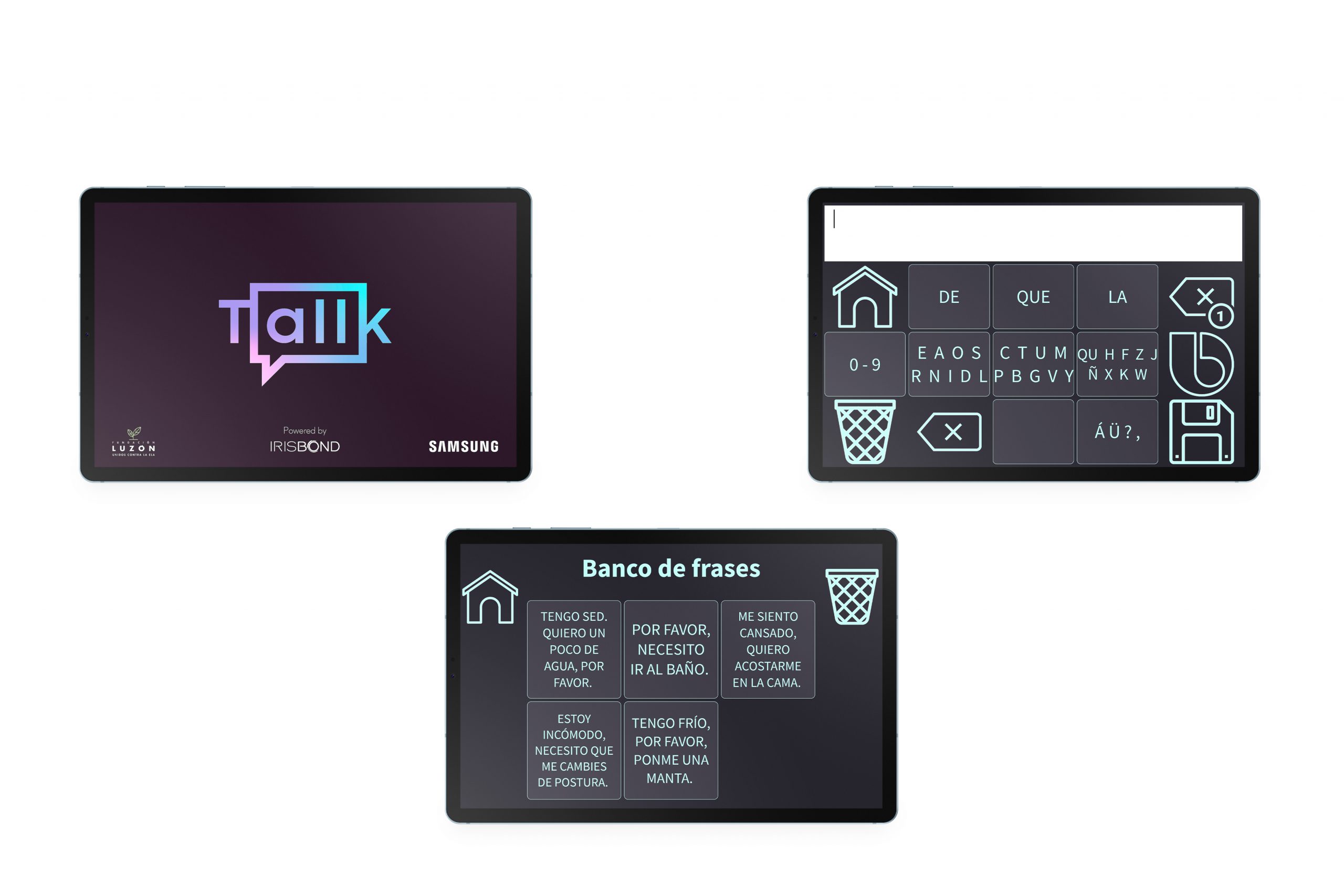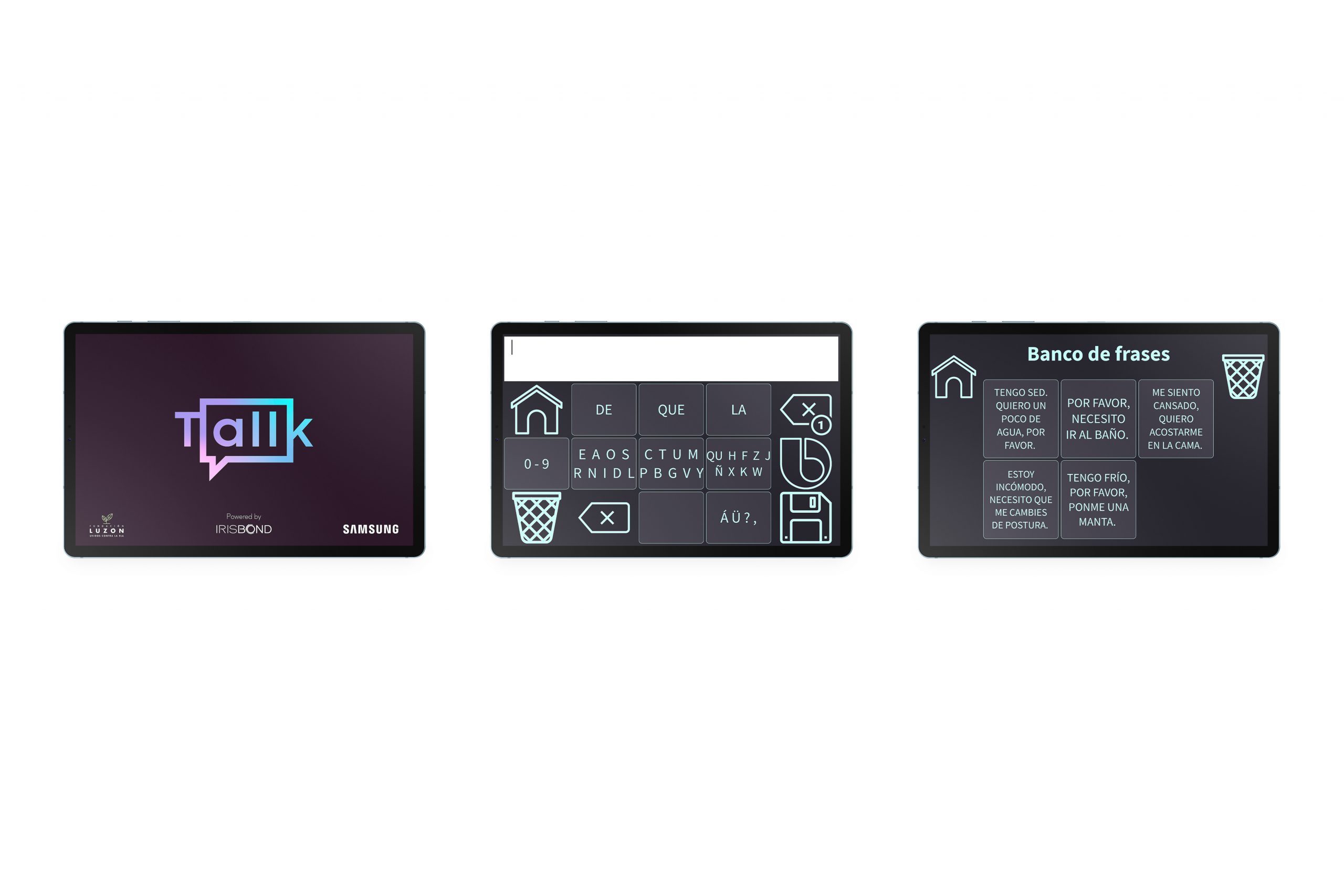 Desde Samsung buscamos crear soluciones innovadoras que contribuyan a mejorar la calidad de vida de las personas. Con Tallk pretendemos facilitar la comunicación entre las personas que sufren una enfermedad tan compleja como la ELA. Por eso hemos decidido confiar a Irisbond el desarrollo de una aplicación tan especial, que pueda utilizarse de forma sencilla e intuitiva tan sólo con la mirada y en dispositivos ligeros, con gran autonomía y pantallas amplias, como las Galaxy Tab de Samsung. De esta forma, ofrecemos a las personas con movilidad reducida y ausencia del lenguaje oral un gran avance tecnológico y asequible, pues solo se necesita una tablet y una app.Miguel Ángel Ruiz, Brand Strategy & Innovation Services Senior Manager en Samsung Iberia.