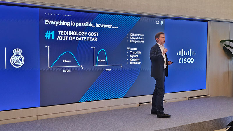 “La gente ve la fachada, las pantallas, el césped retráctil… pero detrás hay una arquitectura tecnológica que casi nadie conoce, y que es fundamental para que todo funcione”, explicó Enrique Uriel, director de tecnología del club, durante el evento Cisco Powering Your Business in the AI Era celebrado en el propio estadio.