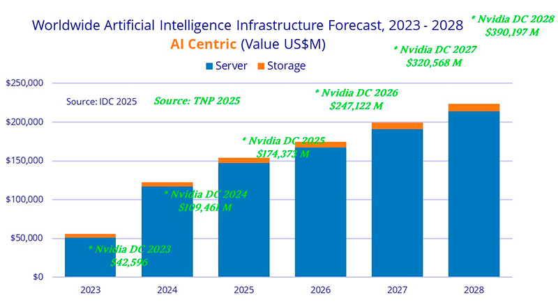 Estos valores superan ampliamente las proyecciones de IDC para el mercado total de infraestructura IA, lo que podría indicar un crecimiento aún más acelerado del esperado en la demanda de hardware especializado.